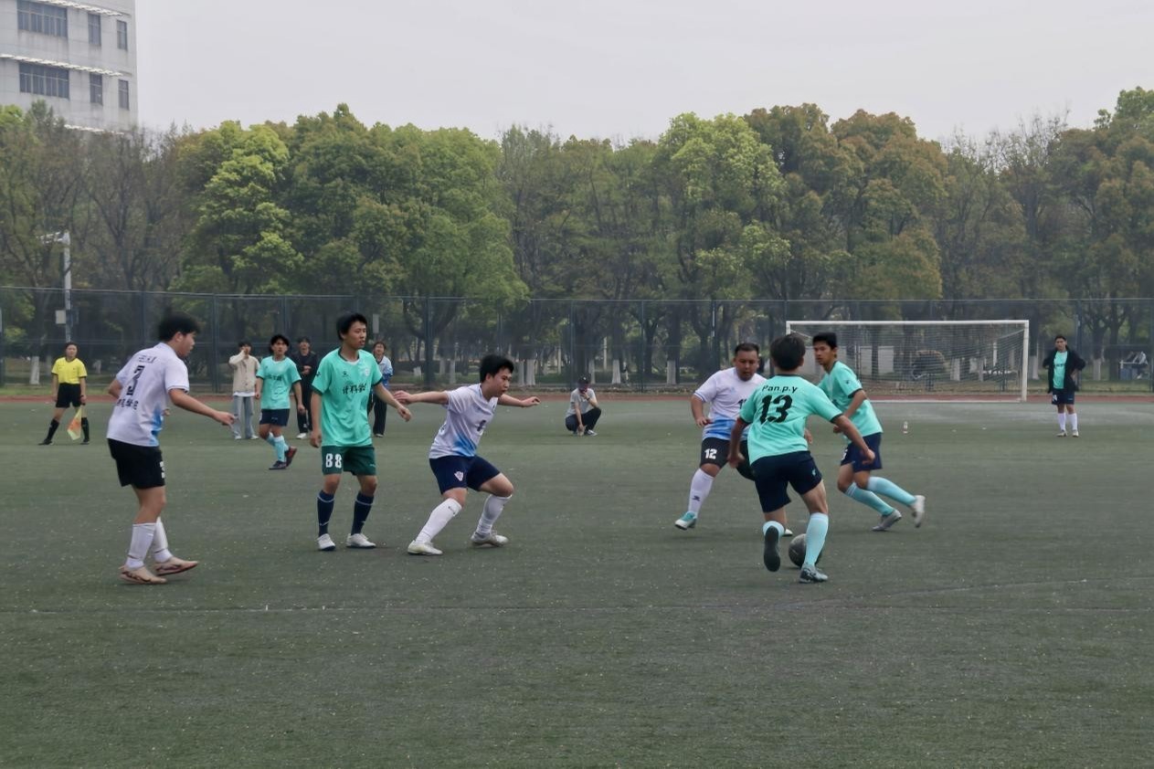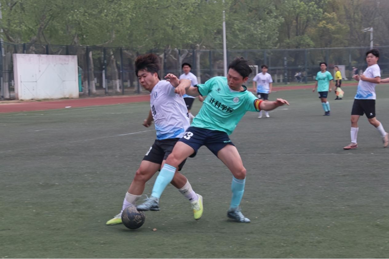 比赛开始前,双方队员有序入场,精神抖擞,在简短的热身准备后迅速进入比赛状态。随着裁判一声哨响,决赛正式拉开帷幕。赛场上,队员们默契配合、奋勇拼搏,带球、传球、抢断、射门等动作流畅连贯,展现出扎实的足球功底与良好的竞技状态。双方攻势此起彼伏,场面紧张激烈,精彩的攻防配合不断赢得场下观众的阵阵欢呼与掌声。队员们用汗水诠释着对足球的热爱,充分展现了团结协作、永不言弃的体育精神。比赛过程中,我院队员始终保持专注,积极跑动、相互鼓励,根据赛场形势及时调整战术。在关键阶段,队员们沉着冷静,抓住机会完成破门,将比赛氛围推向高潮。场边观赛的同学们有序助威,为队员们加油鼓劲,营造了热烈和谐的观赛氛围。裁判公平公正执裁,保障了比赛顺利进行。经过激烈角逐,计科院最终获得胜利,参赛队员们相互致意,展现了良好的体育道德风尚。